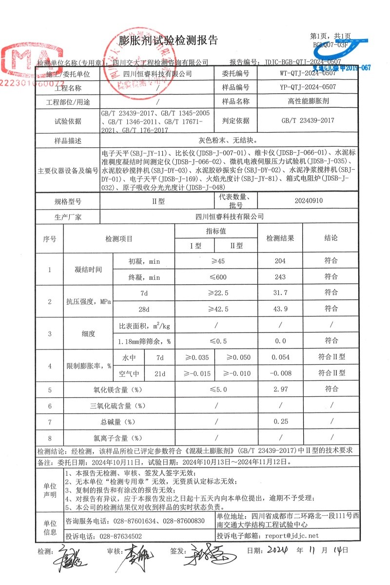 四川恒??萍加邢薰?/strong>成立于2017年11月13日,注冊(cè)資金1180萬(wàn)元,是一家專業(yè) 生產(chǎn)銷售特種加固水泥基、聚合物砂漿材料、混凝土外加劑的高科技實(shí)體企業(yè)。其位置座落在美麗的蓉城青羊區(qū),地理位十分優(yōu)越、交通便利。