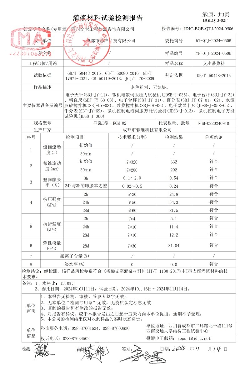 公司主營生產(chǎn)高強度聚合物砂漿,高強無收縮灌漿料,孔道壓漿劑,高鐵加固專用聚合物修補砂漿,橋隧專用電纜,自公司成立以來始終以滿足客戶的需求為焦點,可根據(jù)工程規(guī)范要求生產(chǎn)或提供來料加工等特殊服產(chǎn)品訂制服務(wù),為諸多行業(yè)用戶提供了高質(zhì)量的系列產(chǎn)品和優(yōu)質(zhì)服務(wù),得到了用戶的廣泛認(rèn)可。